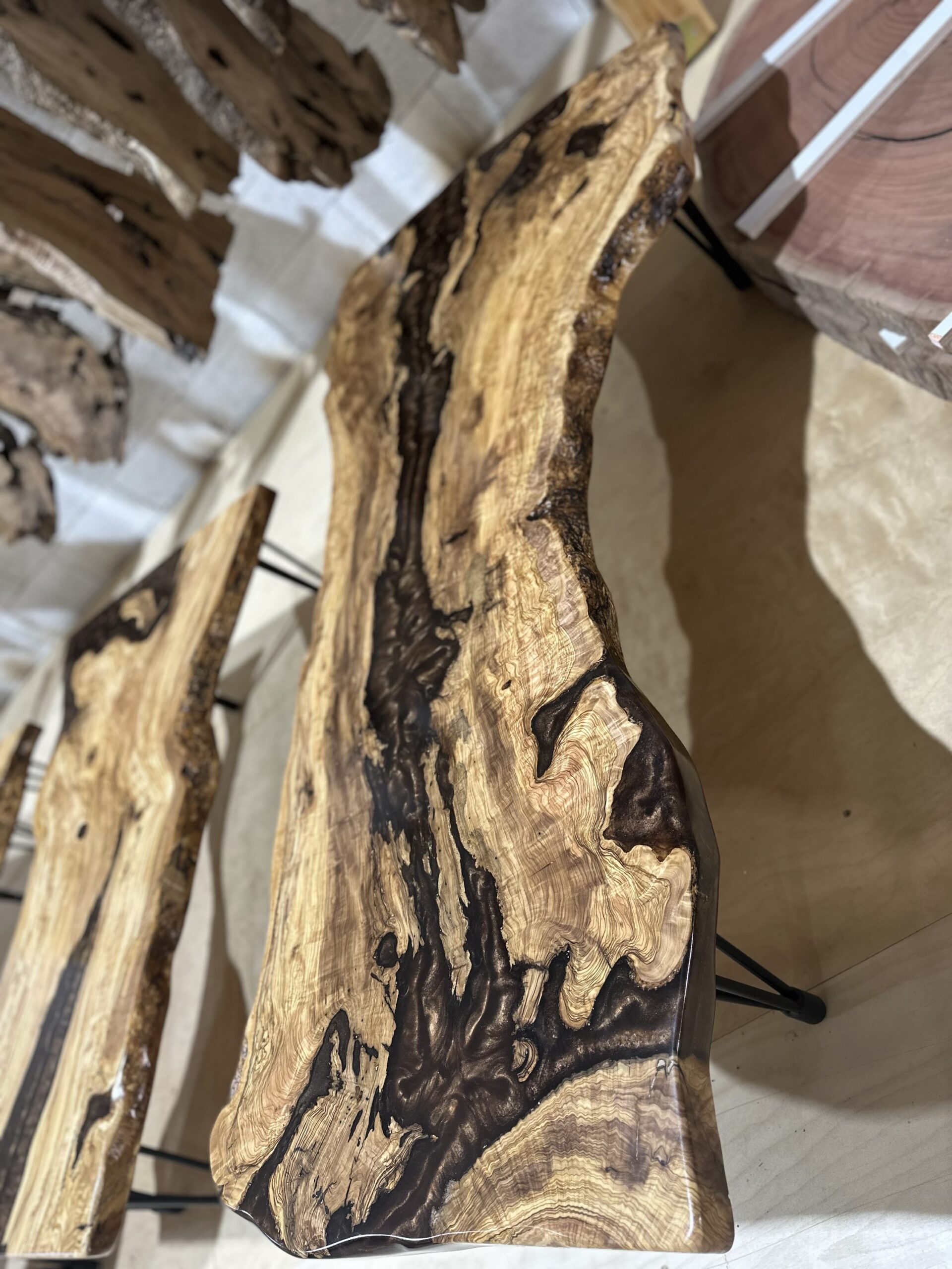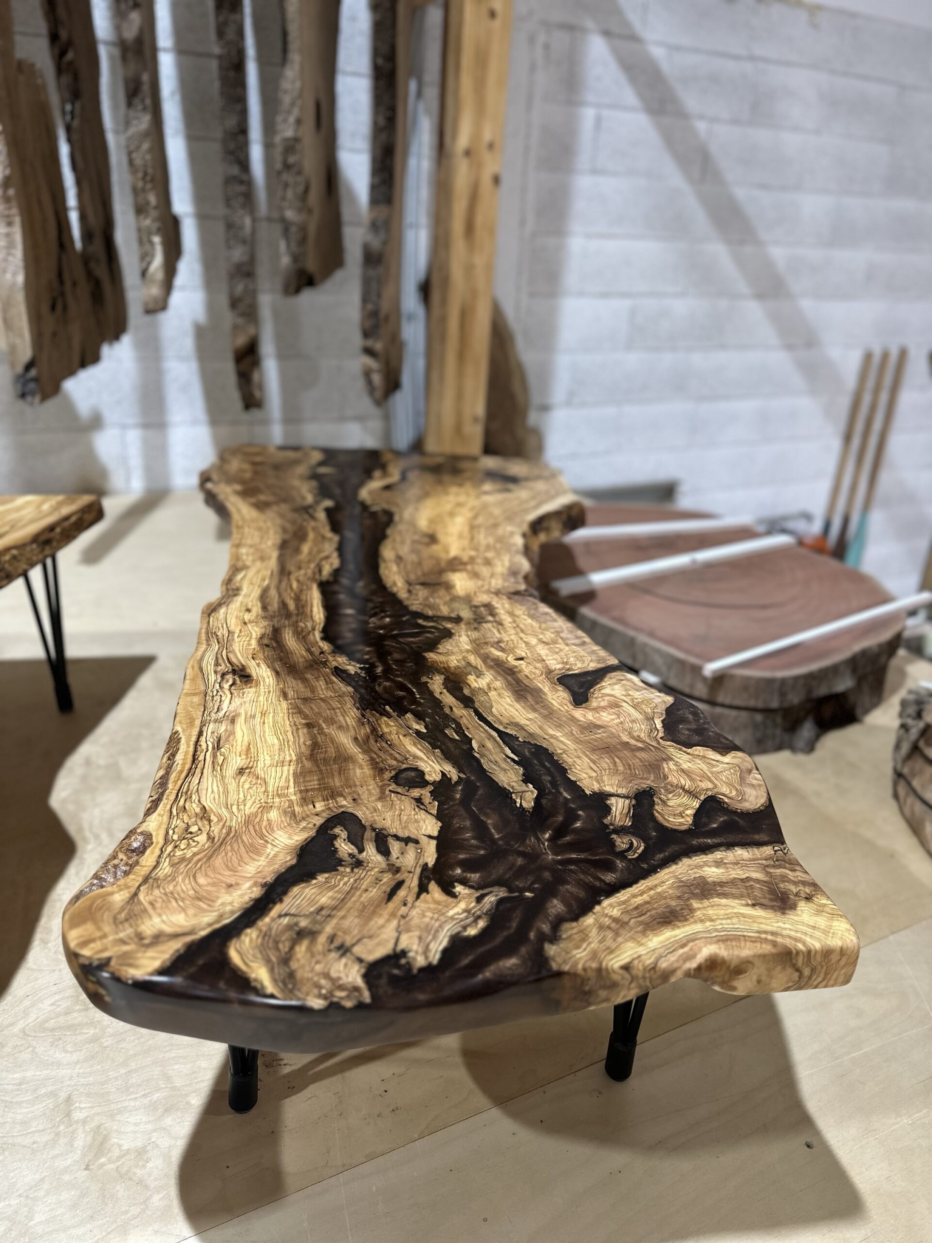 כמות של שולחן סלון עץ זית עם שילוב אפוקסי
