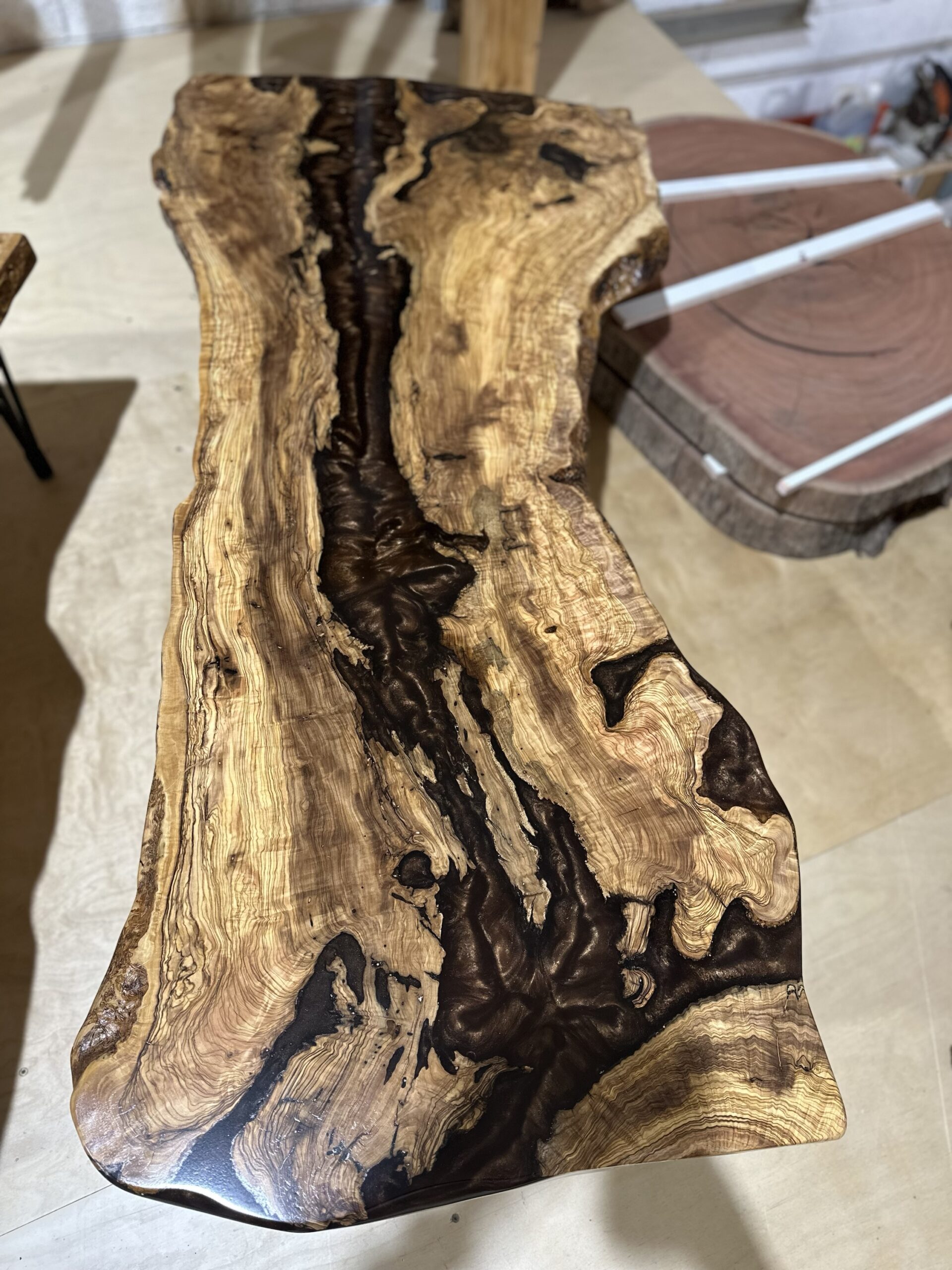 שולחן סלון עץ זית עם שילוב אפוקסי